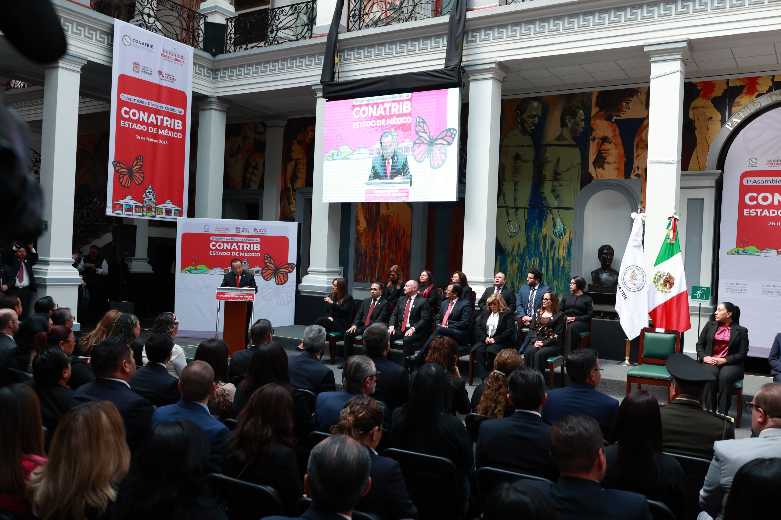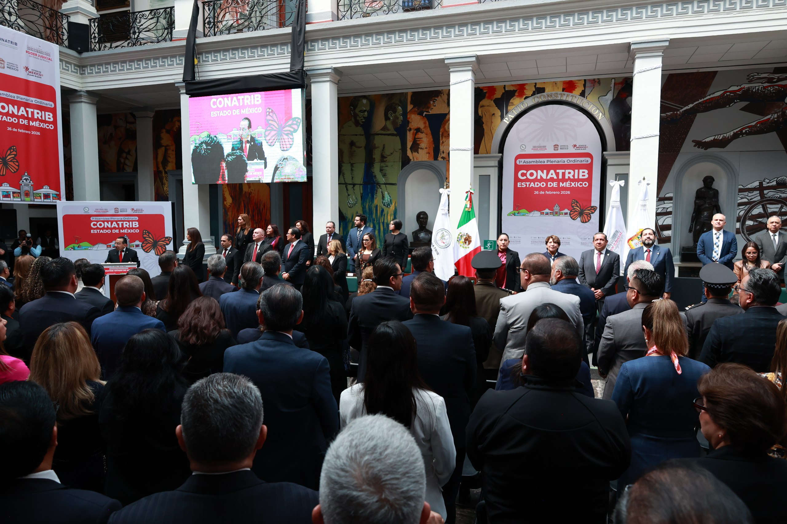 Macedo García sostuvo que la unidad y la cohesión de los poderes públicos, es fundamental para demostrar la fortaleza y la solidez de las instituciones de nuestro país. “Esta Primera Asamblea Plenaria Ordinaria Conatrib 2026, de la que el Estado de México es sede, representa un mensaje claro de solidaridad, fortaleza y unión de todas las instituciones que velan por la legalidad y la paz de nuestro país”.
